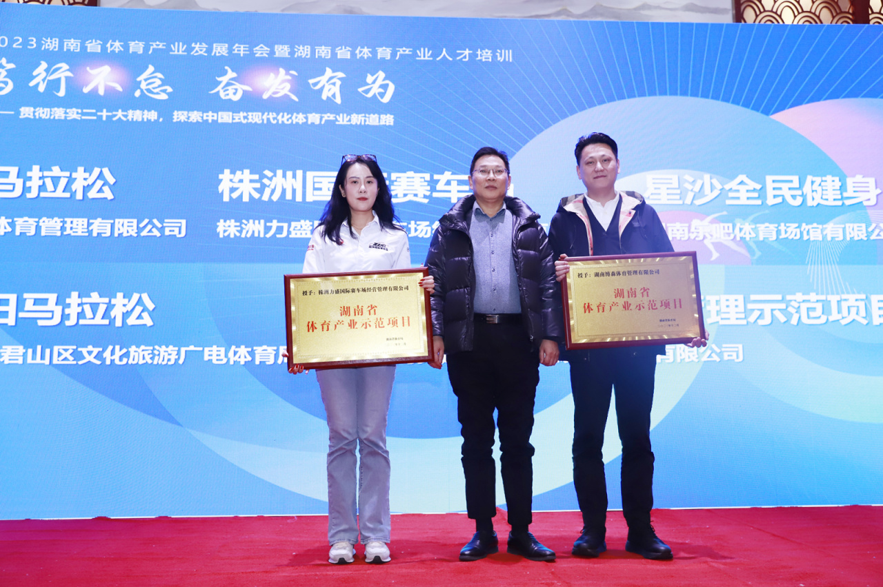 15日上午,2023年湖南省產業(yè)發(fā)展年會暨湖南省體育產業(yè)人才培訓在長沙華天大酒店召開。我司運營的IP項目-湘江馬拉松賽榮獲2023湖南省體育產業(yè)示范項目并獲得授牌。